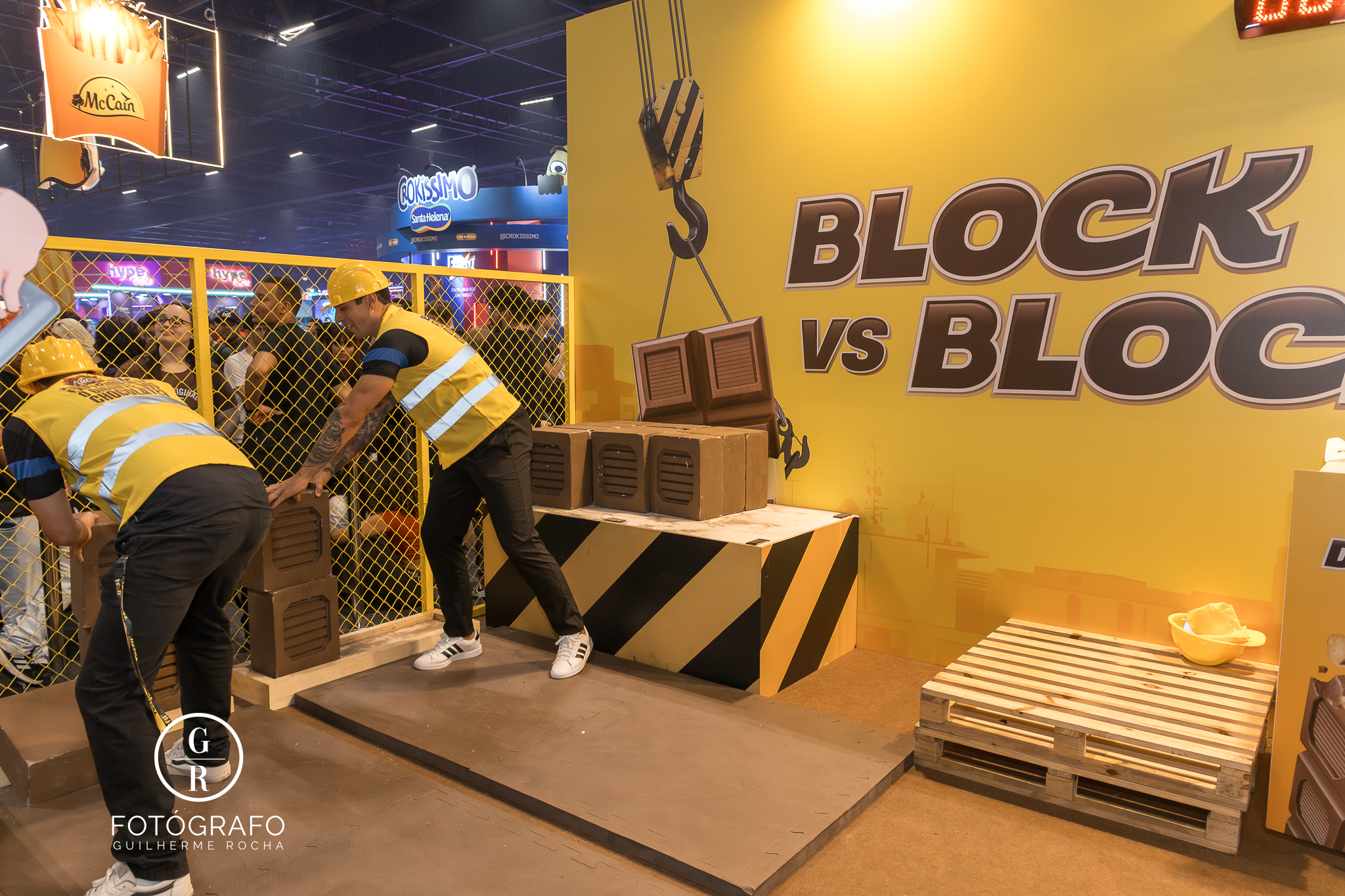 Block: a competição “Block vs Block” colocou dois participantes para montar a torre de chocolate mais alta, além do “Desafio da Mordida”, que premiava quem desse a maior mordida em um tablete de 300g sem quebrá-lo.