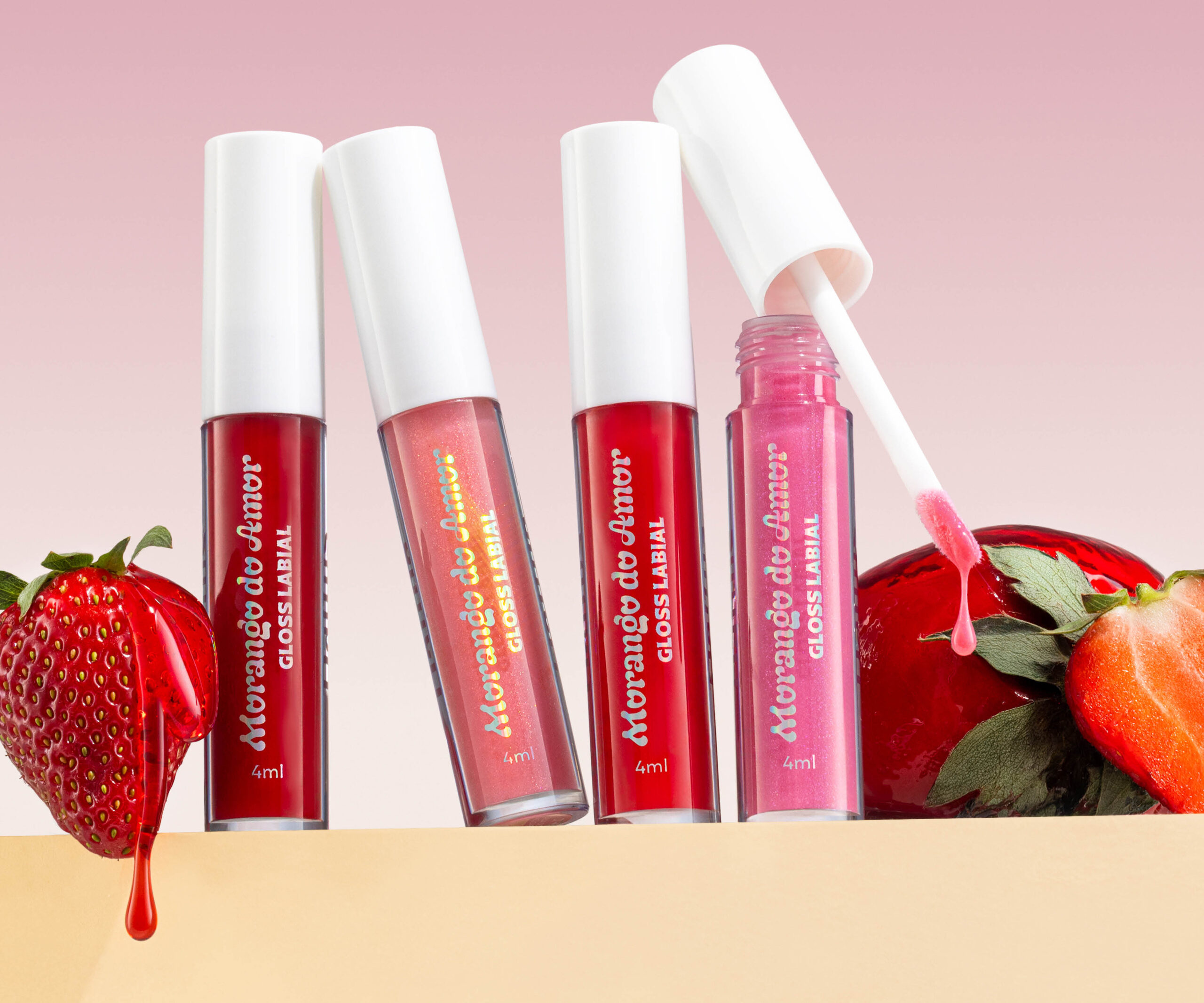 Os glosses da coleção Morango do Amor trazem aroma adocicado, cobertura translúcida e brilho delicado inspirado em sabores populares. A textura é leve e macia, garantindo conforto ao longo do dia e um visual luminoso que remete ao universo da confeitaria.