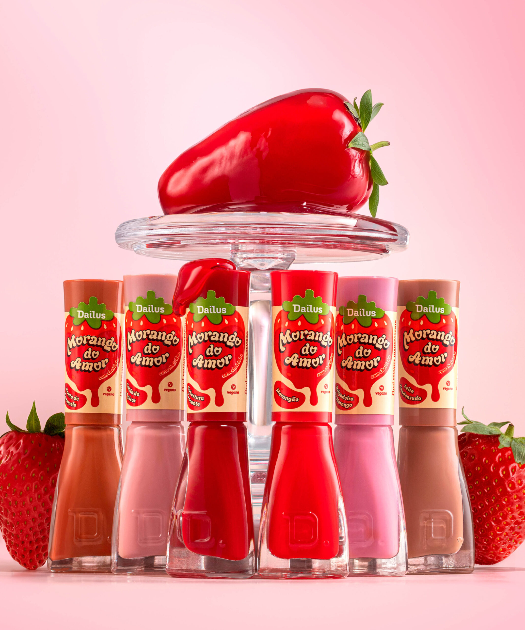 A coleção Morango do Amor reforça a proposta criativa da Dailus, unindo estética divertida, aromas nostálgicos e fórmulas pensadas para o dia a dia. Com cores que transitam entre o delicado e o vibrante, a linha entrega uma experiência completa para quem busca beleza acessível, sensorial e cheia de personalidade.