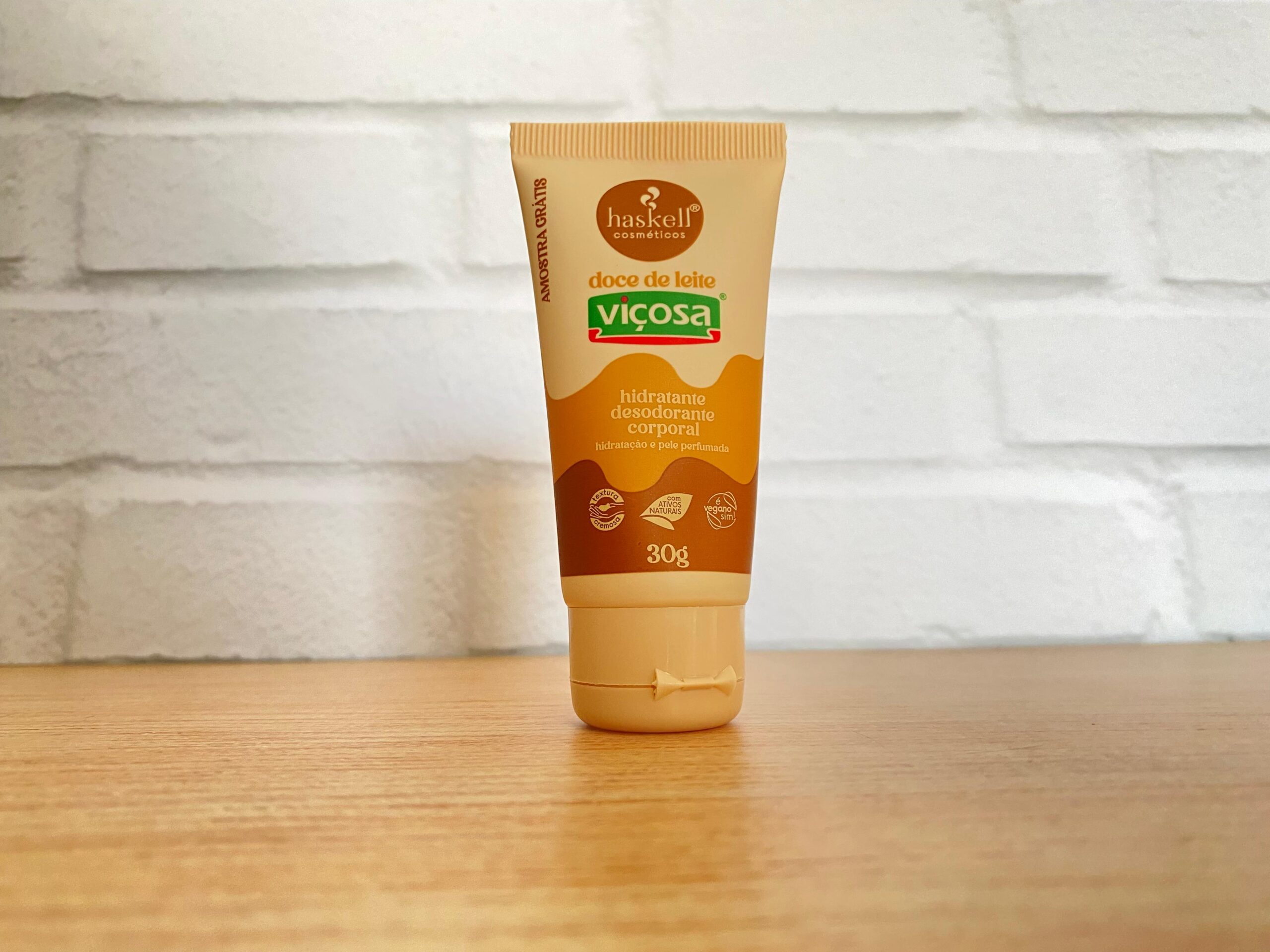 O Hidratante Haskell Doce de Leite Viçosa é uma parceria deliciosa com a tradicional marca mineira Viçosa. A textura cremosa e o aroma gourmand deixam a pele macia e perfumada por horas. Um cuidado diário que combina nutrição intensa, perfume envolvente e toque de indulgência que encanta desde a primeira aplicação.