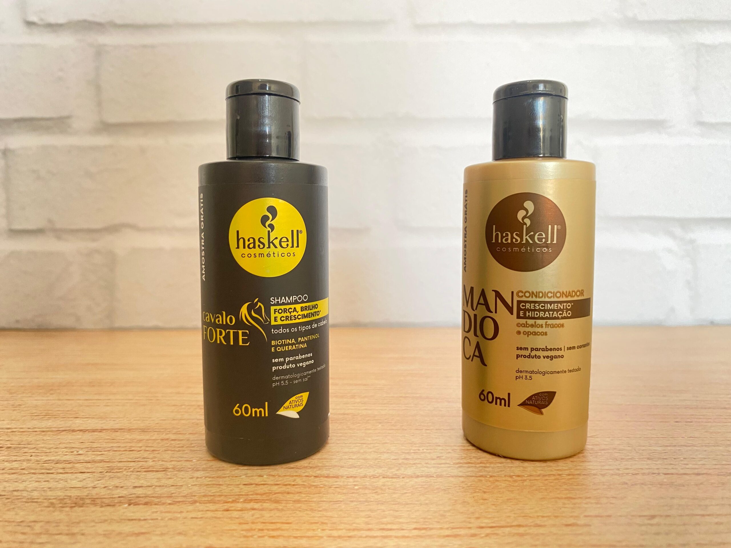 Os produtos capilares da Haskell combinam tecnologia e ativos naturais para tratar diferentes necessidades dos fios. O Shampoo Cavalo Forte se destaca pelo poder de fortalecer e estimular o crescimento, graças à ação da biotina, pantenol e queratina, que promovem brilho, resistência e vitalidade. Já o Condicionador Mandioca oferece hidratação intensa e maciez, ideal para cabelos opacos e danificados, devolvendo movimento e brilho natural com leveza e suavidade.