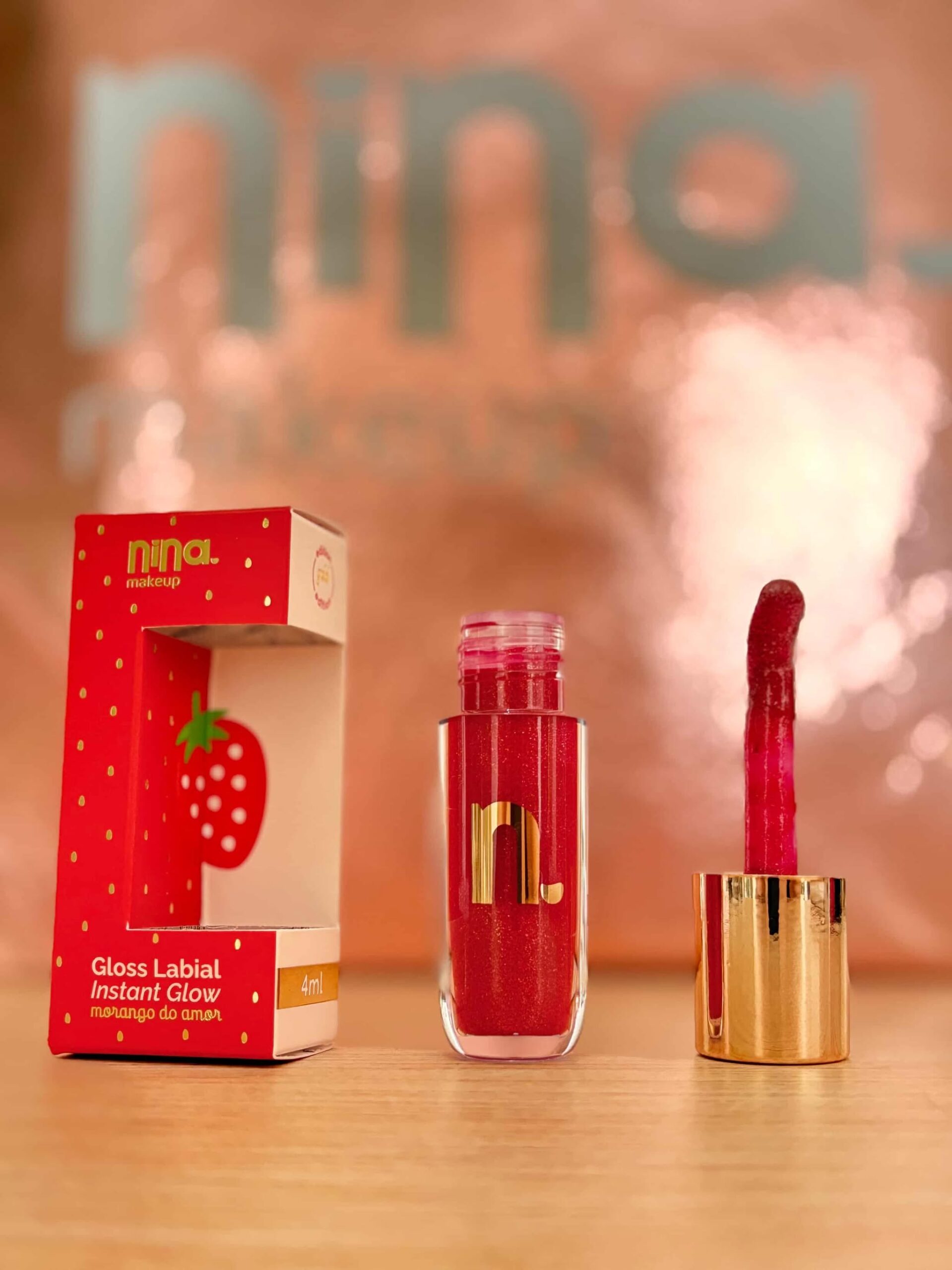 O Instant Gloss impressiona logo na primeira aplicação pelo brilho intenso e pela textura confortável. O aplicador espalha o produto com facilidade, garantindo cobertura uniforme e sensação leve nos lábios. O tom Morango do Amor apresenta um vermelho vibrante, inspirado na cor natural do morango, com partículas de brilho dourado que refletem a luz de forma elegante. A sensação é refrescante, com leve toque mentolado e acabamento hidratante, tornando o gloss uma ótima opção para quem busca efeito marcante e conforto em um só produto.