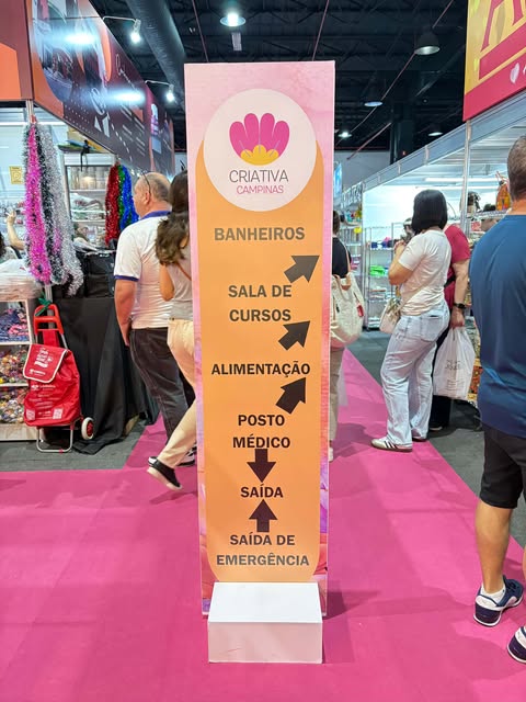 A Criativa em Campinas ofereceu uma infraestrutura planejada para receber bem os visitantes. A feira contou com bancos posicionados estrategicamente para descanso, mapas distribuídos ao longo do pavilhão, bebedouro disponível e sinalização clara indicando lanchonete, sala de cursos, posto médico, saídas de emergência e banheiros. O evento também trouxe um espaço instagramável para fotos e diversas exposições artísticas, que enriqueceram a experiência dos participantes.